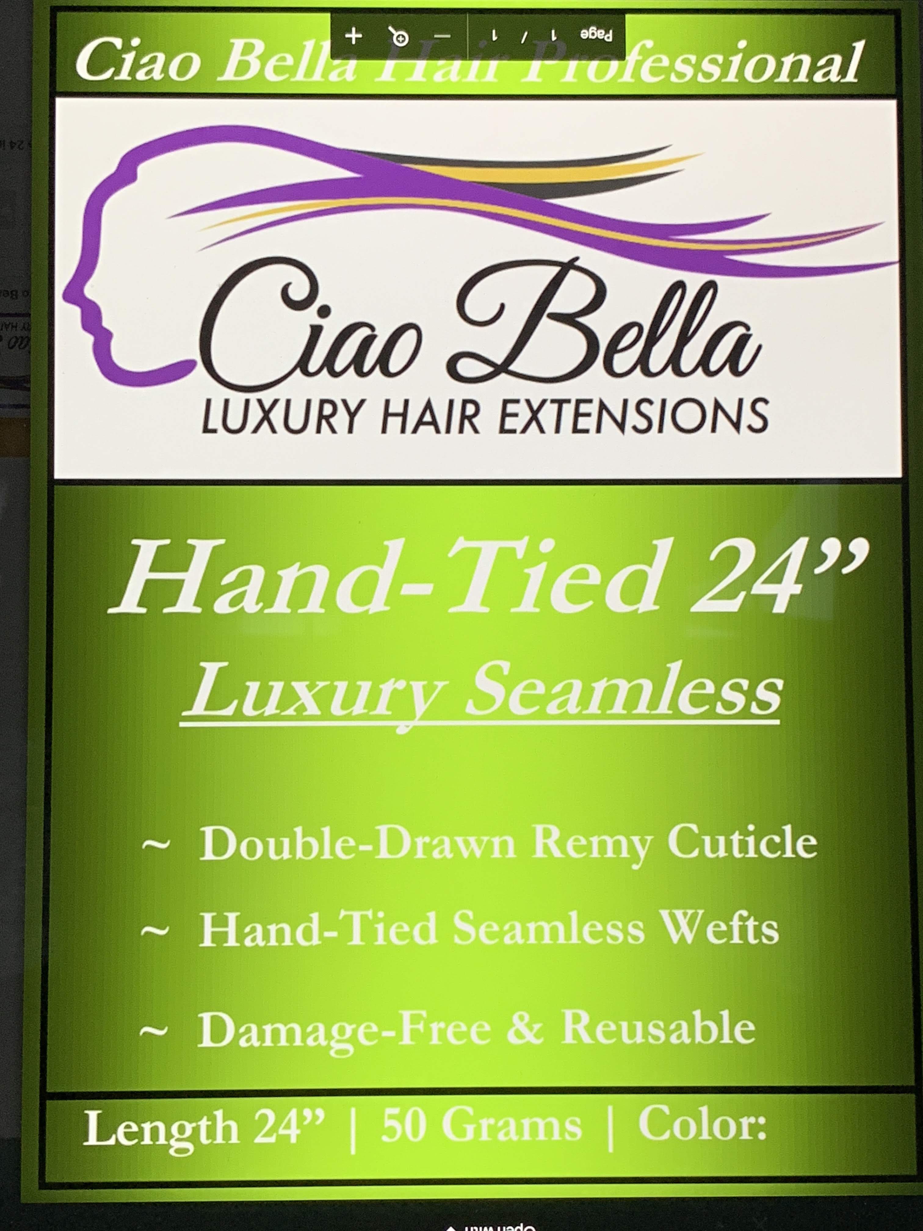 Where Hair Extension Professionals buy remy cuticle, 100% human hair for tangle-free, long-lasting results. Shop Ciao Bella Luxury Hair in over 60 colors of Hand-Tied Wefts, Micro-Beads, Tape-Ins, and Clip-Ins. We ship with UPS across the U.S.A., and offer same-day delivery in the Dallas, Texas metro.